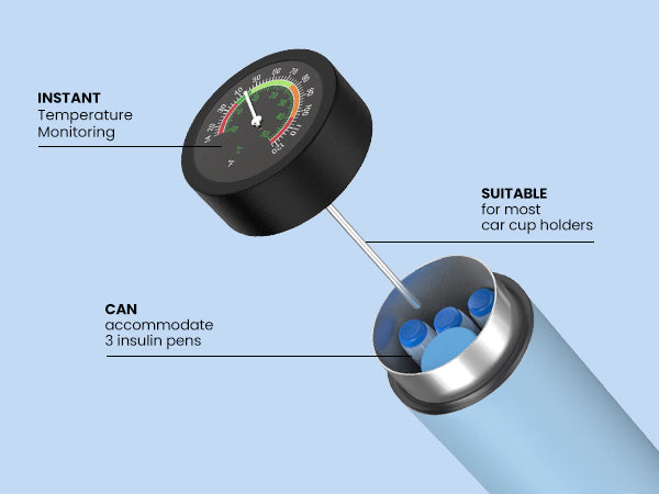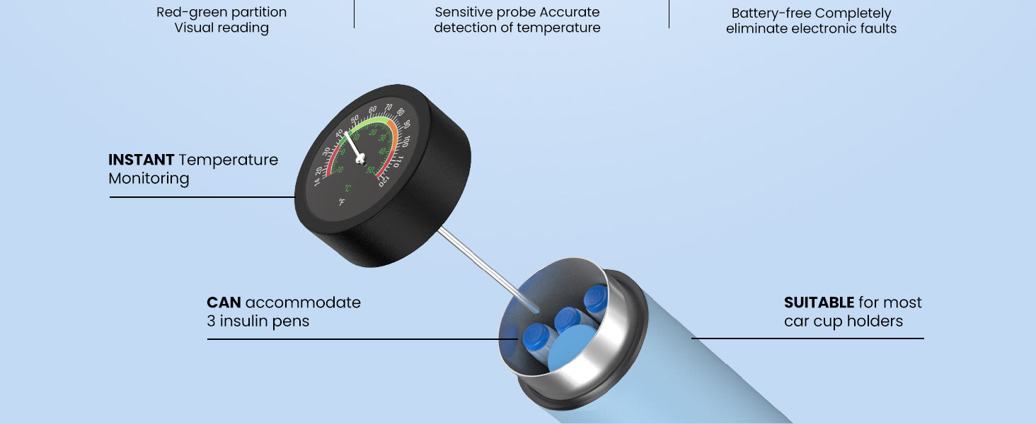 Exclusive to our diabetes travel case, the large dial thermometer with color-coded zones gives instant visual confirmation your meds stay in safe ranges - no guesswork needed (No Battery Required)